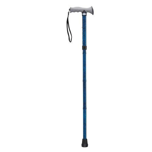 Drive Medical's adjustable-height folding gel grip cane offers sturdy support, comfort, and folding convenience. The gel grip is designed to reduce stress and hand fatigue, providing a more comfortable experience. The handle height of our walking stick is adjustable from 32 inches to 36 inches, allowing for personal sizing. As an added bonus, a handy wrist strap, attached to the handgrip ensures that you are always in reach of your cane when you need it. The cane easily folds and unfolds without tools, making storage or travel convenient.